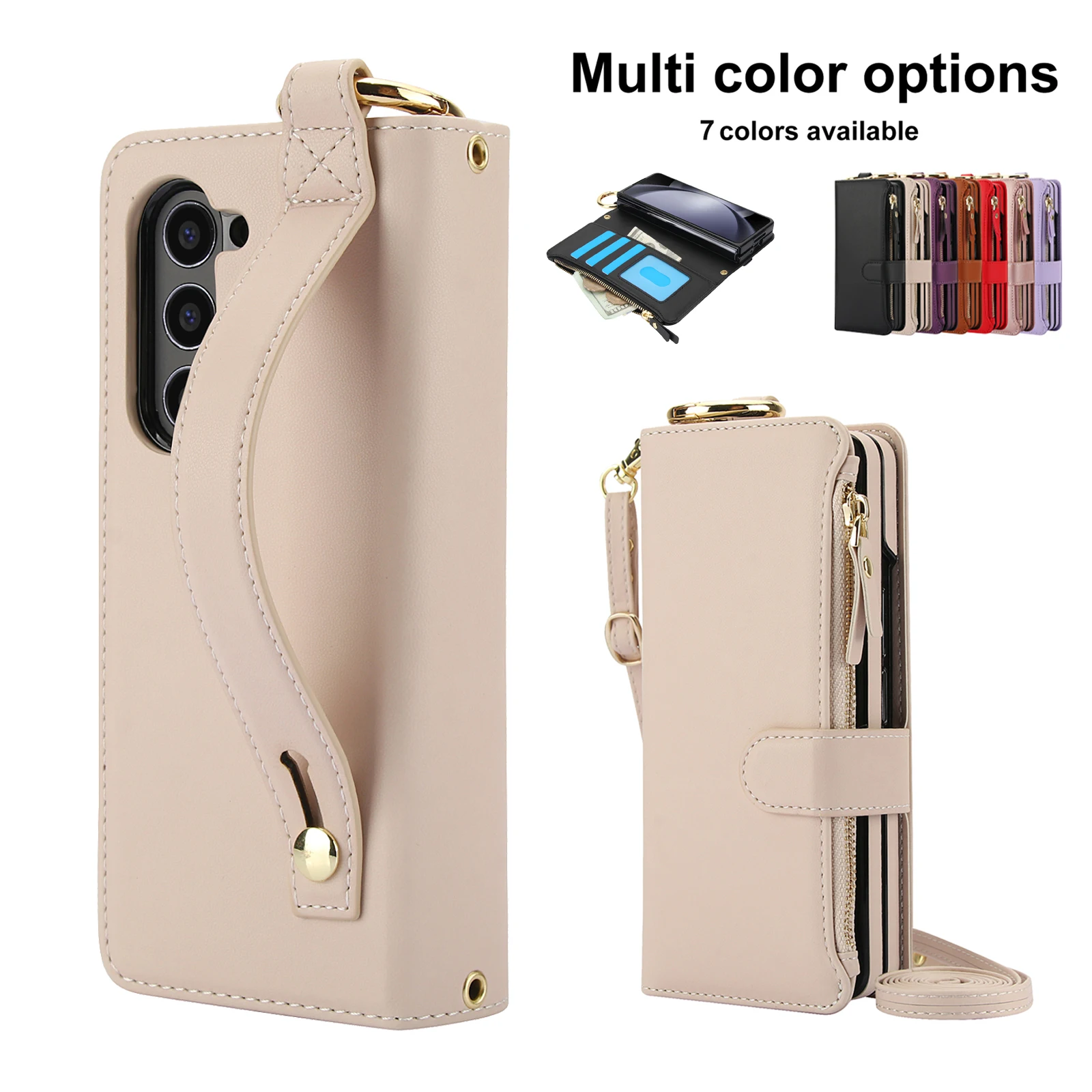 For Samsung Galaxy Z Fold 7 6 5 4 3 Multi Functional Wallet Card Slot Leather Case Wristband Zipper Ring Holder Shockproof Cover