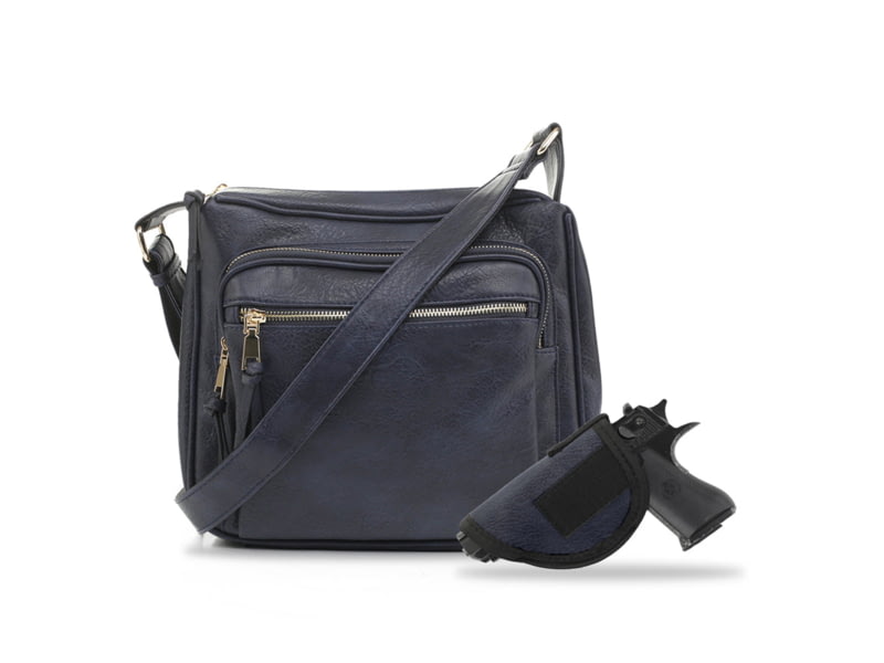 Jessie & James Brooklyn Concealed Carry Lock and Key Crossbody CCW Handbag Navy AMC5806L NV. Crafted from high-quality faux leather this sleek and durable bag offers a polished look with everyday versatility. Its adjustable shoulder strap ensures a...  Read more