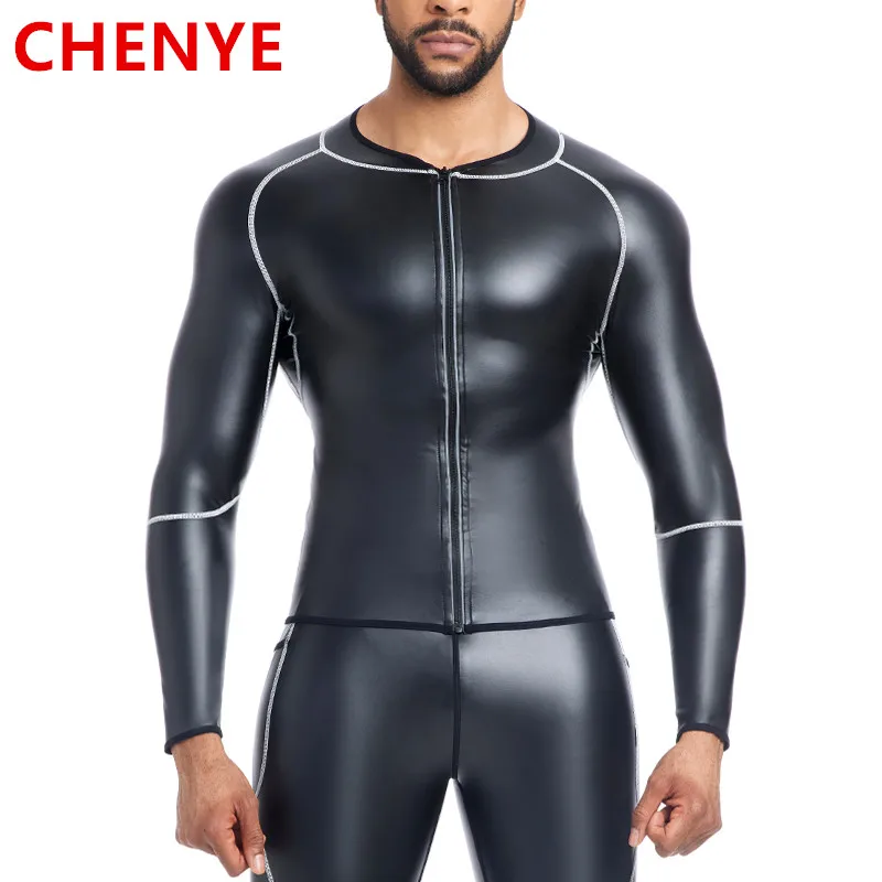 New Men Leather Pants Leather Jacket White line Faux Leather Long Sleeve Shirt Male Body Shaper Waist Trainer Corsets Zip Shirts