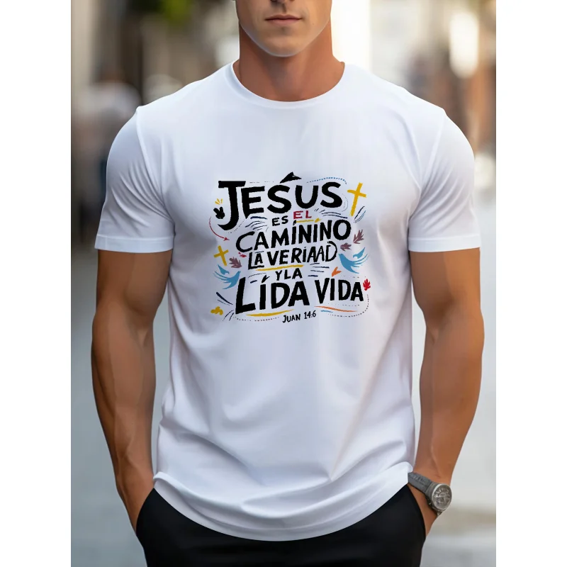 Men's T-Shirt White Jesus is the Way Truth and Life Printed Religious Text High Quality Cotton 180g