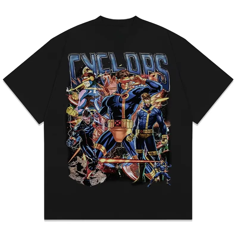 Cyclops Cartoon Original Printed T-shirt Marvel Summer New Men's and Women's Plus Size Street Fashion Loose Casual Short-sleeved