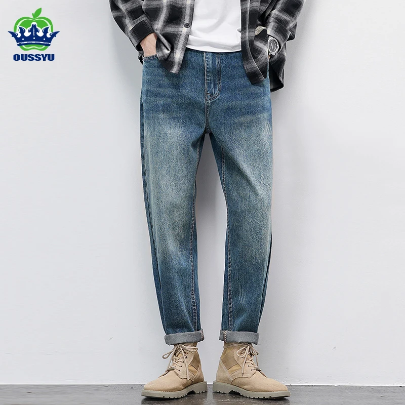 Autumn Winter American Vintage Men's Jeans Cotton Thick Casual Classic Fashion Black Blue Loose Straight Denim Trousers Male