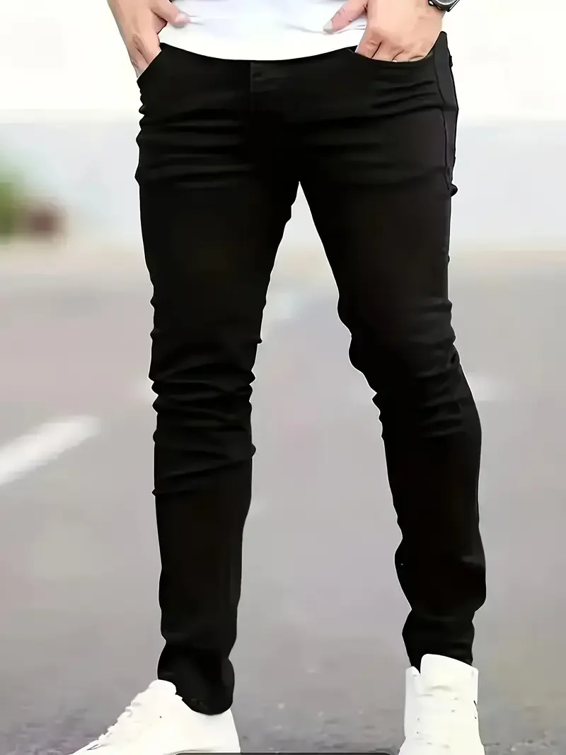 Men's Slim-Fit Black Jeans - Stretch Denim, Mid-Rise, Casual Skinny Pants for All Seasons
