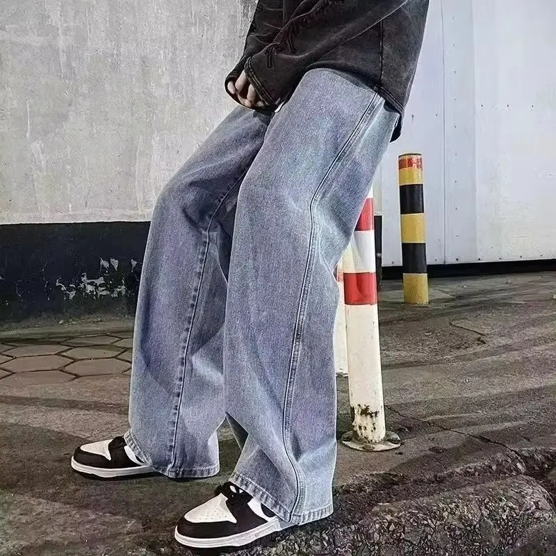 2023New Streetwear Loose Jeans Men Korean Style Fashion Loose Straight Wide Leg Pants Men's Brand Clothing Black Light Blue  Read more