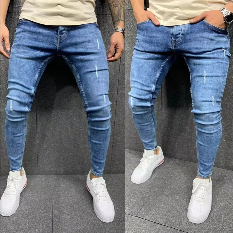 Men New Fashion Black Blue Denim Jeans Men Slim Fit Denim Pants Cotton Stretch Trousers Classic Daily Pencil Pants
