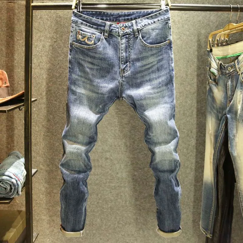 2025Heavy Duty Washed and Scraped Denim Men's Trendy High-end Embroidered Printed Loose Tapered Straight Leg Jeans