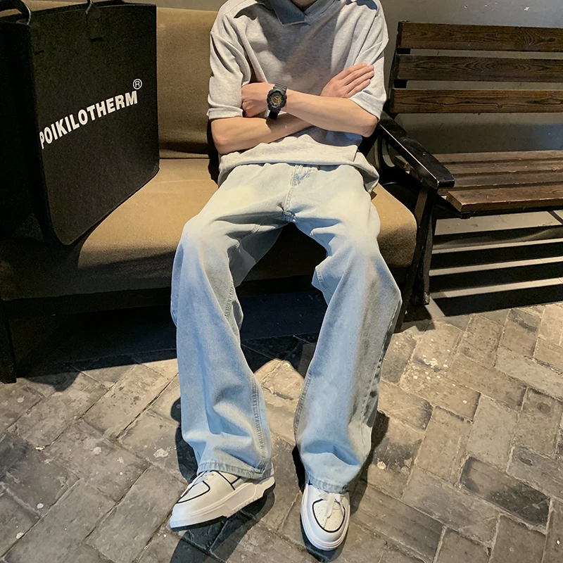 2023 New Streetwear Loose Jeans Men Korean Style Fashion Loose Straight Wide Leg Pants Men's Brand Clothing Black Light Blue  Read more