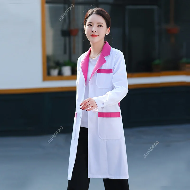 Wholesale Long-sleeved Unisex White Coat High Quality Loose Embroidery Work Clothes Nurse Accessories Medical Uniform Lab Coat