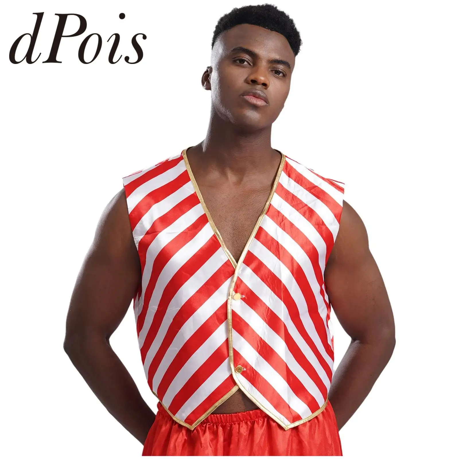 Men's Christmas Candy Cane Waistcoat Sleeveless Vest Red White Stripe Print Tops Party Festival Carnival Santa Claus Costumes