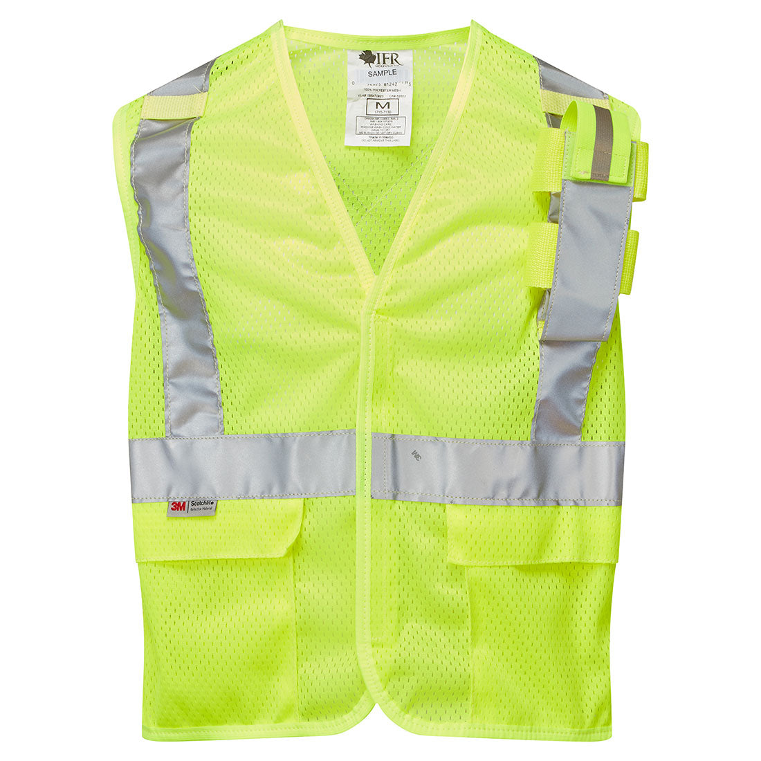 • 5-Point tear-away system that allows the vest to “tear-away” at 5 points in case of emergencies, • Featuring 2” 3M™ Scotchlite™ Reflective Trim, • Made with Hi-Viz 100% polyester mesh, • Expandable radio holster