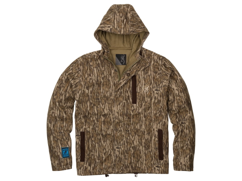 Browning Hydro-Fleece Jacket - Mens Mossy Oak Bottomland XL 3041211904. 3-Layer waterproof taped-seam construction. Silent brushed fabric exterior. Two zipper handwarmer pockets. Water-resistant front zipper with internal storm flap and chin guard....  Read more