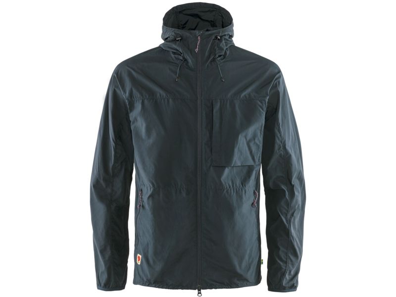 Fjallraven High Coast Wind Jacket - Men's Navy Medium F82606-560-M. A practical jacket for many kinds of outdoor life - hiking paddling or cycling. Adjustable hood and three zippered pockets for small items. Sleeve cuffs with elastic edging. Waxed...  Read more