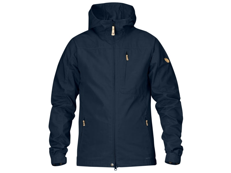 Fjallraven Sten Jacket - Men's Dark Navy Medium F81679-555-M. Pre-shaped sleeves and fixed hood that sits snugly around your face. Two zippered side pockets. Zipper in the front with inner flap. Adjustment at the hem and buttoned sleeve cuffs. Can...  Read more