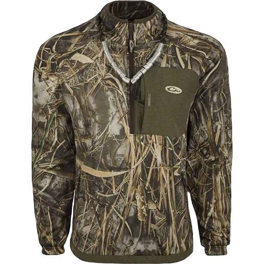 Drake Waterfowl Men's Max-7 MST Endurance Quarter Zip Pullover Hunting Jacket - The Camo Pullover is ideal for maximum comfort and mobility during warmer conditions. The lightweight soft-shell fabric is a perfect barrier when hanging at the camp on...