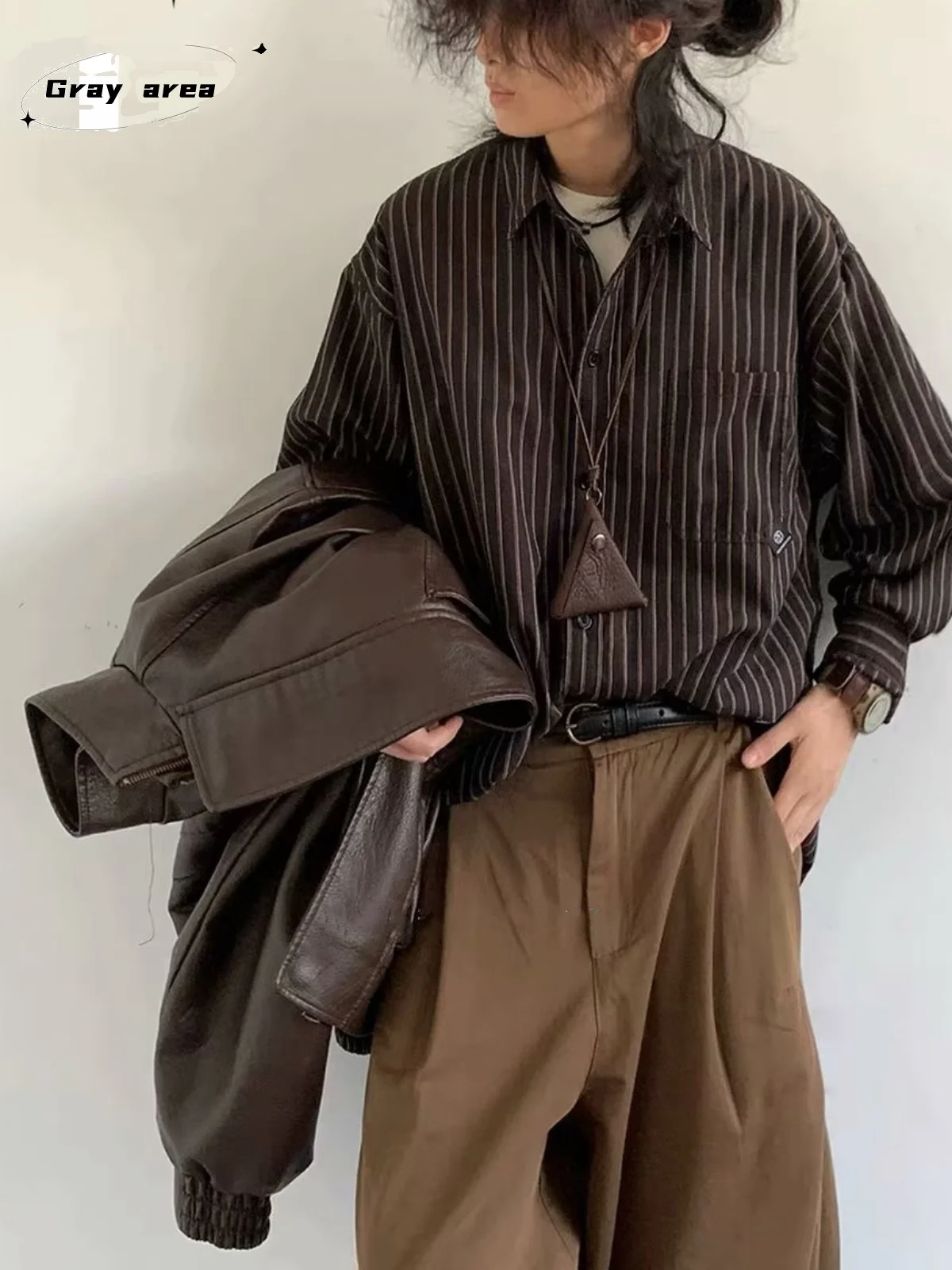 Retro Japanese Sle Long Sve Men's irt Casual Vertical Stripes Spring Autumn Trendy Loose Fit Versatile Salt Sle Coat