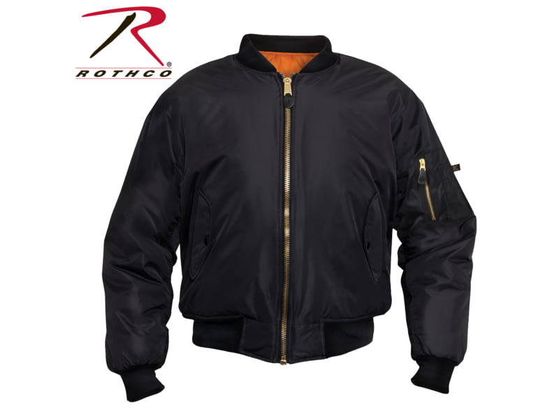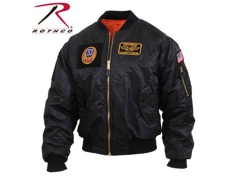 Rothco MA-1 Flight Jacket w/ Patches - Mens Black 4XL 72520-Black-4XL. Originally created for pilots the MA-1 jacket is a great way to keep warm and dry. Equipped with an extremely warm poly fiberfill Rothco's aviation jackets keep the cold out...