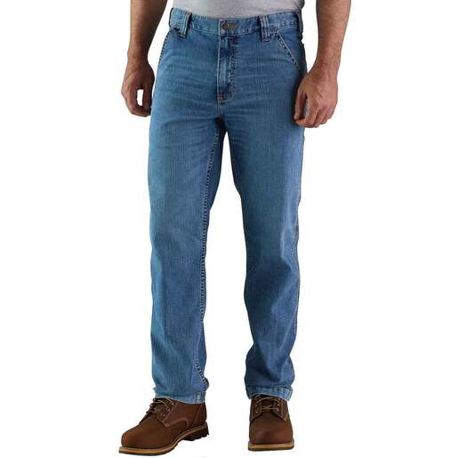 Carhartt Men's Rugged Flex Relaxed Fit Utility Jeans - Double shifts or 14-hour days. These men's jeans can stand up to almost anything. 85% Cotton/14% Polyester/1% Spandex denim Built to move with Rugged Flex stretch technology More room to move...