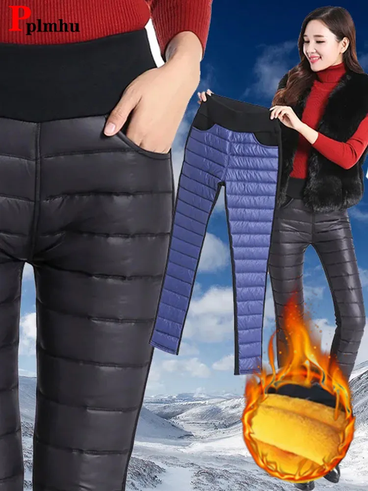 Winter Snow Wear Cotton Pencil Pants Thicken Double Plush Velvet Pantalones Spodnie Warm Padded Womens Big Size 4xl slim Trouser