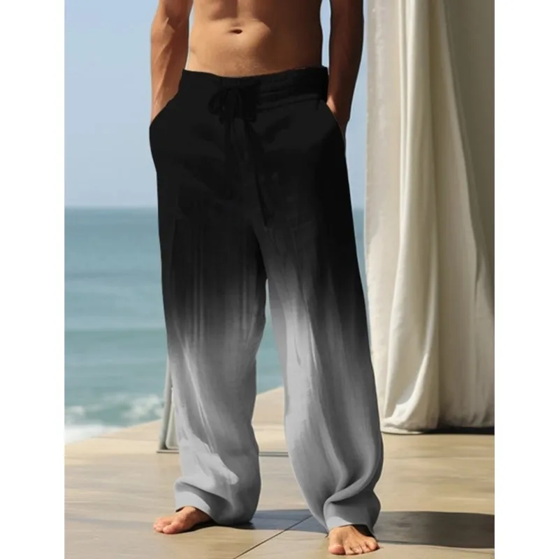 Gradient Abstract Men‘s 3D Print Pants Trousers Outdoor Street Going Out Polyester Lake Blue Black Mid Waist Elasticity Pants