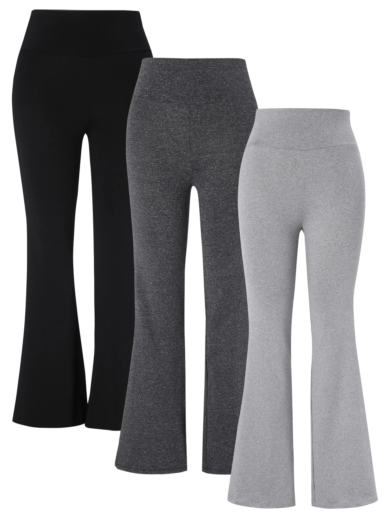 3-Pack or Single Piece Elegant Wide-Waisted Solid Color Summer Flared Pants - Polyester Blend, Knitted Fabric, Elastic Waist, Mature Style Long Length - No Embellishments Adult Regular Fit Knitted