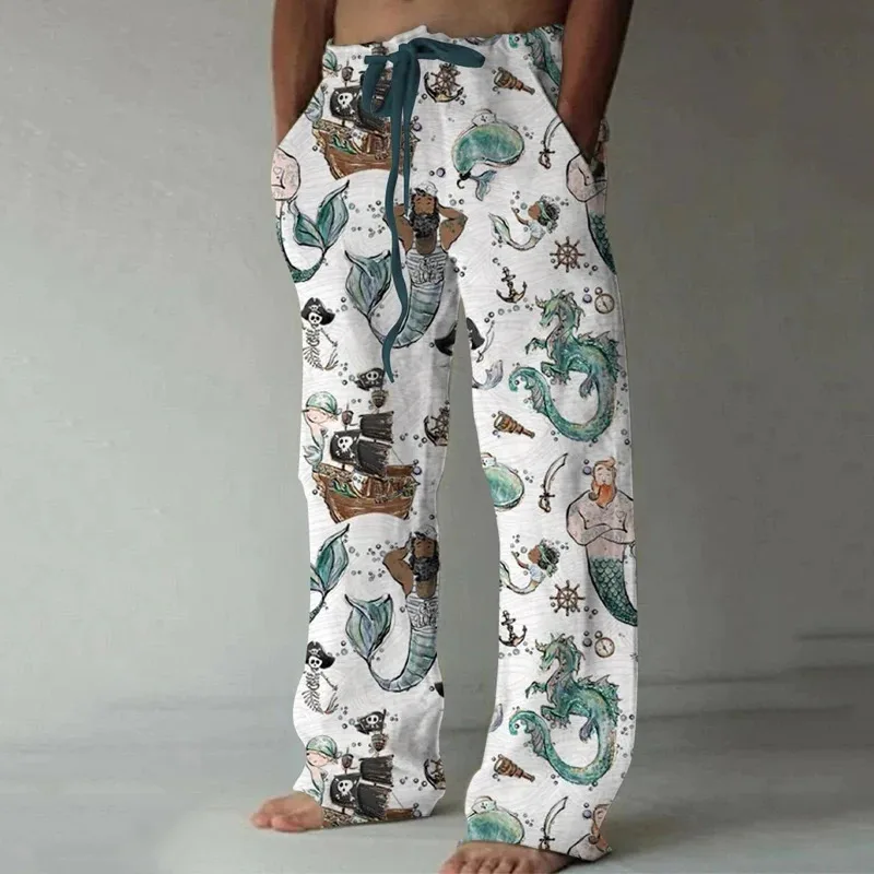 Summer Men's Fashion Trend 3D Printed Wide Leg Pants Hawaiian Style Beach Pants Vacation Casual Loose Pants