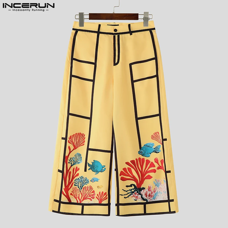 INCERUN Men Pants Embroidered Printing Patchwork Button Casual Wide Leg Trousers Men Streetwear Loose 2025 Fashion Long Pants  Read more