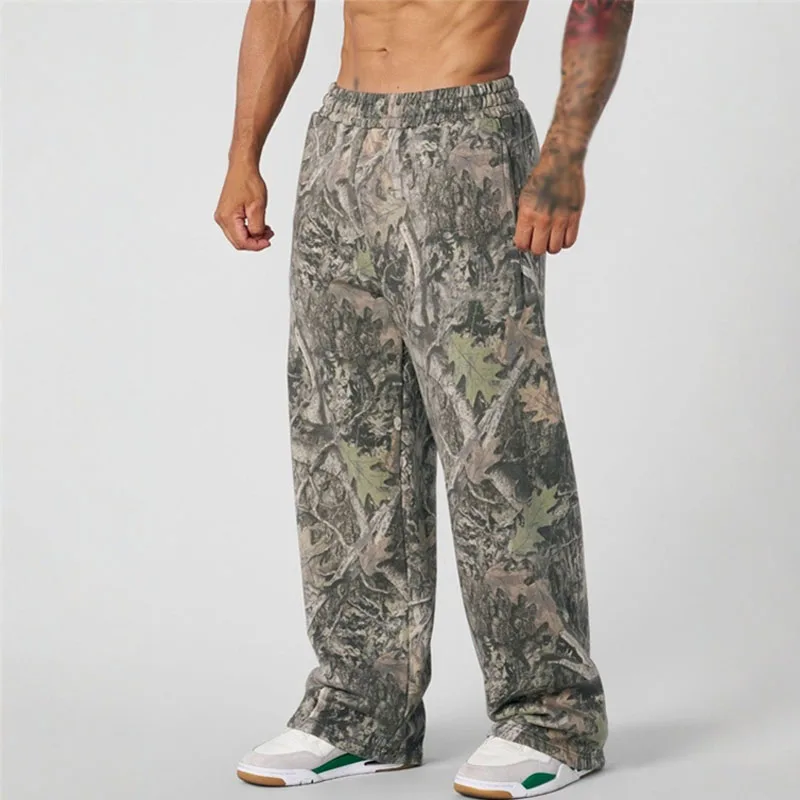 2025 New Jogger Straight Trendy Fitness Pants Men's Camouflage Wide Leg Pants Breathable running sweatpants loose men trousers