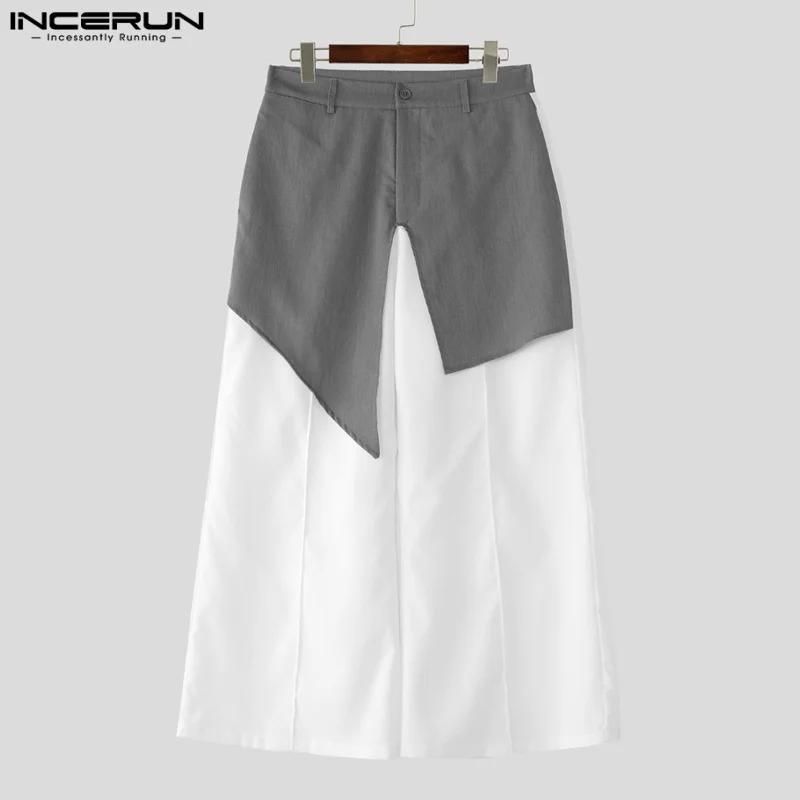 INCERUN Fashion Men Wide Leg Pants Patchwork Button Joggers Loose Casual Trousers Men Streetwear 2025 Male Long Pants S-5XL