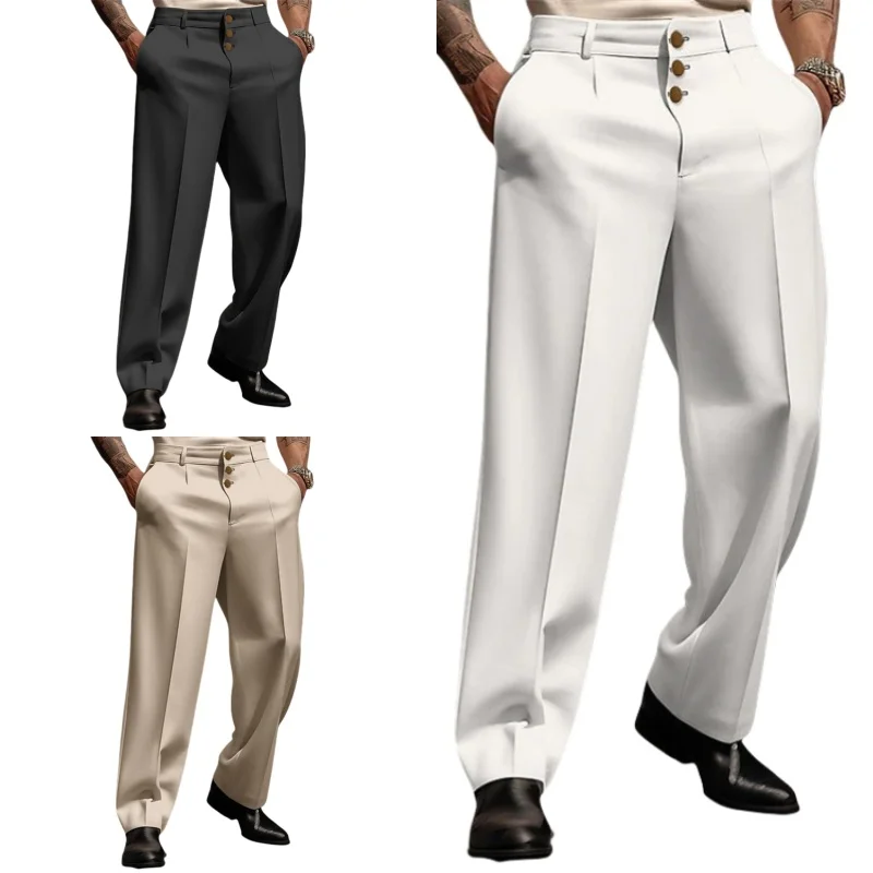 Men's Stand Pocket Elegant Wide Leg Pants Solid White Formal Party Trousers Plus Size 3xl Mens Fashion Triple Buttons Suit Pants