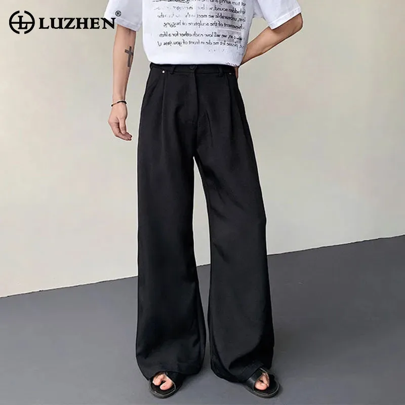 LUZHEN Straight Men's Color Trendy Casual Pants Elegant Solid 2025 New Fashion Korean Loose Wide Leg Trouser Male Clothes JY2647