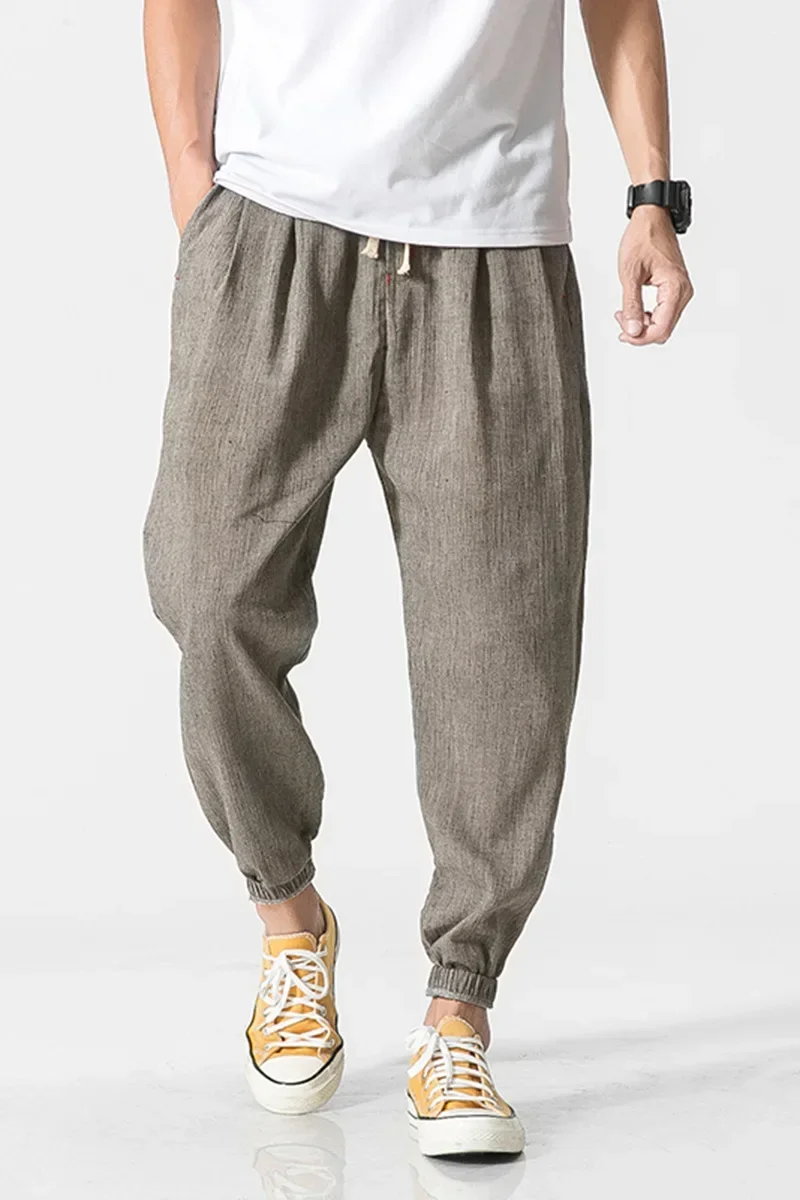 Summer Men's Loose Fit Cotton Linen Pants Thin Lantern Style Harajuku Casual Trousers Wide Leg Comfortable Breathable