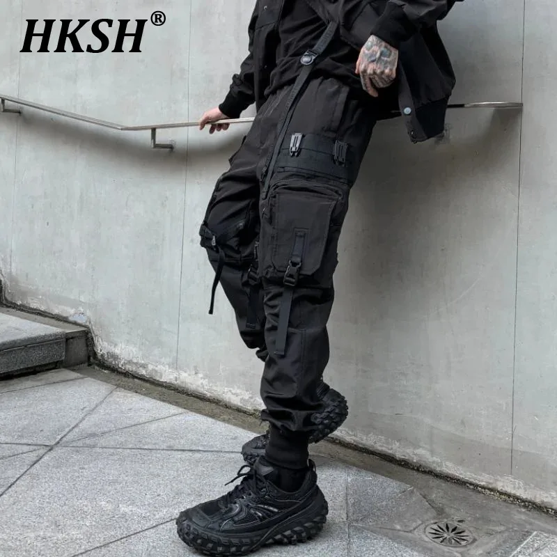 HKSH Autumn Spring New Men's Tactical Safari Style Cargo Pants Dark Overalls Tide Fashion Loose Casual Pockets Techwear HK0011