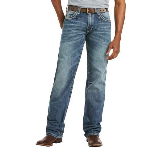 Ariat Men's M4 Coltrane Low Rise Boot Cut Jeans - A modern take on a classic style. Comfortable and durable, our boot cut M4 is relaxed through the hip and thigh for a fit that looks good on everyone. Anchored belt loops No-rub comfort inseam...