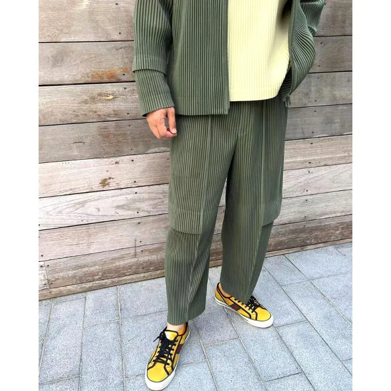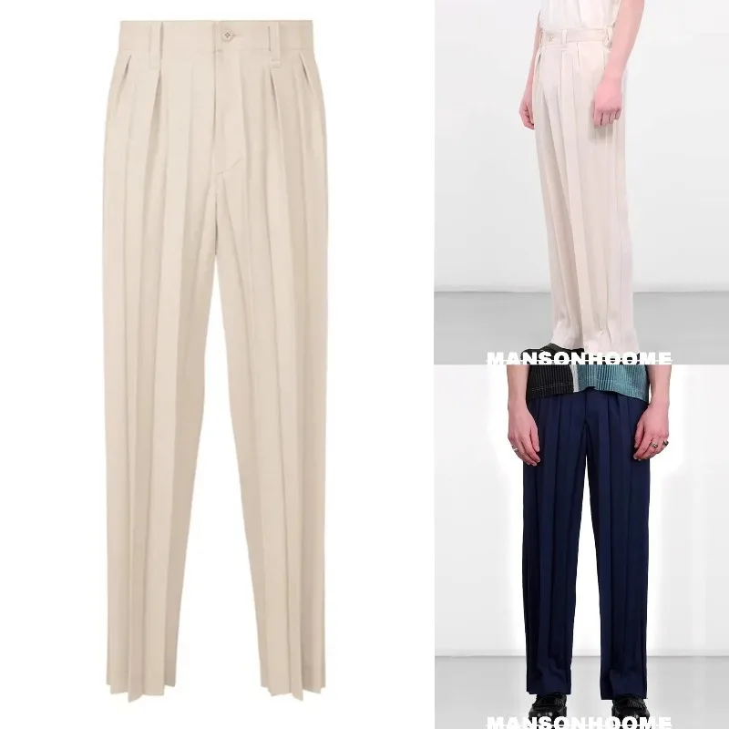 Miyake Pleated Solid Color Casual Suit Pants 2025 Fall New Business Work Straight Pants Personality Fashion Men Clothing