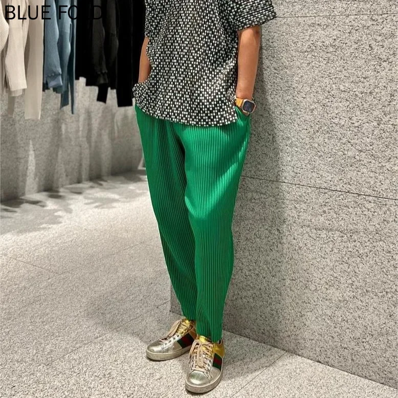 Miyake Summer 2025 Men's Pants Pleated Trend Bloomers Pleats Fashion Loose Pleated Casual Harlan Pants Nine-Point Pants Tide