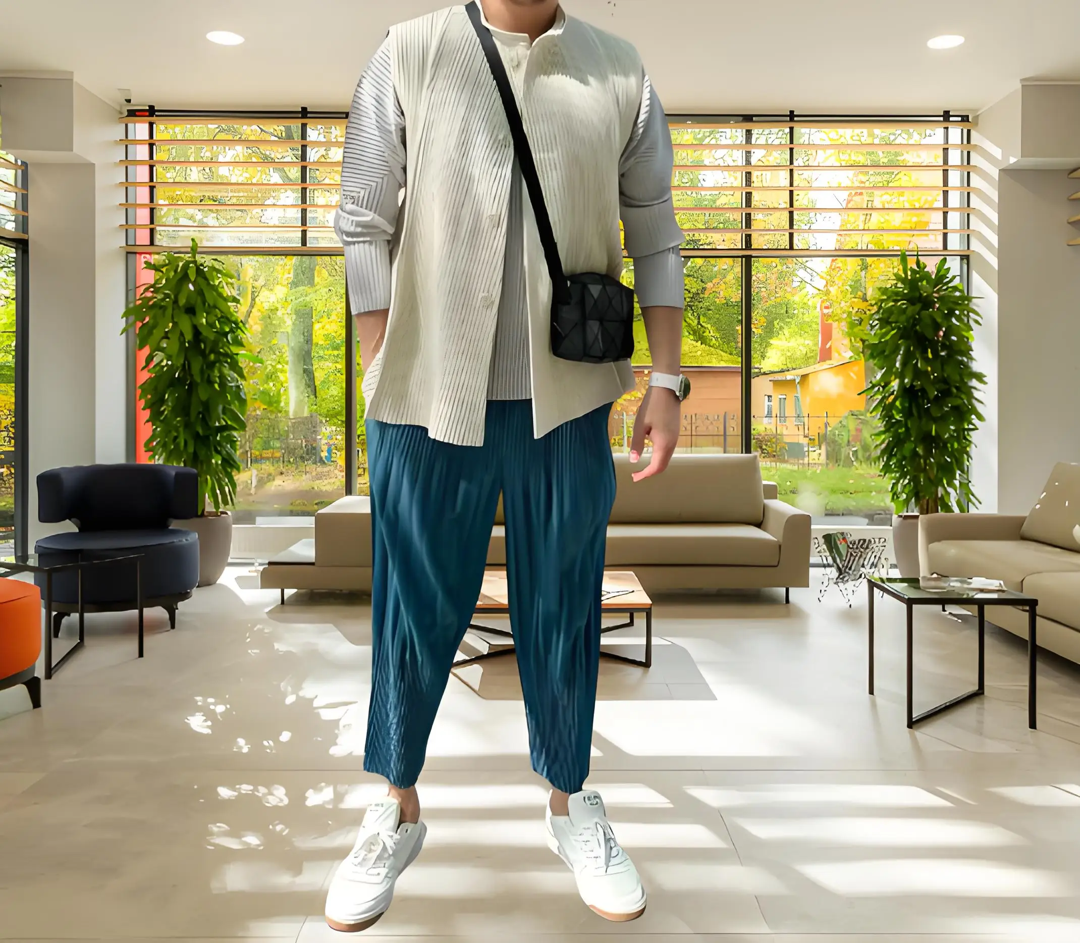 High - Fashion Drop - Crotch Trousers Chic White Drape Trousers Premium Fabric Casual Pants Streetwear Elegant Pleated Designs
