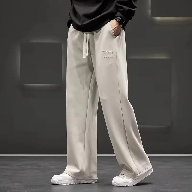 New Men's Casual Pants Wide Leg Straight 65% Cotton Fabric Outdoor Sweatpants Neutral High-quality Soft Long Baggy Trousers