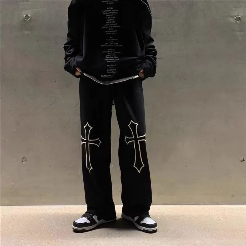 American high street personality printed casual pants spring and summer brand retro hiphop straight leg loose wide-leg pants