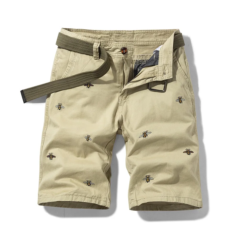 Summer men'sshorts loose straight leg pants casual solid color Japanese style over the knee sports pants multi pocket work pants