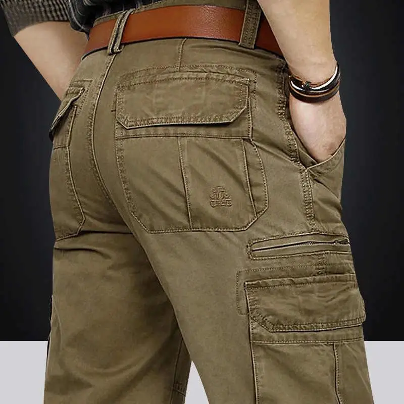Loose Fit Men's Casual Cotton Work Trousers Outdoor Leisure Pants Multi kets Straight Leg Long Trousers Wear Resistant