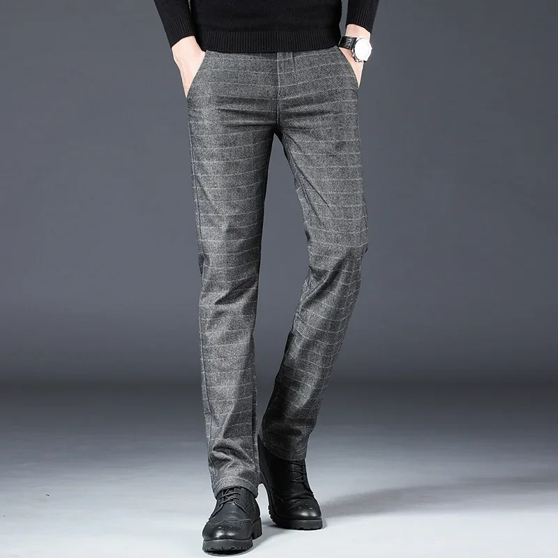 Men's New Designer Plaid Business Prom Work Stretch Trousers Male Vintage Soft Cotton Slim Fit Straight Leg Casual Long Pants