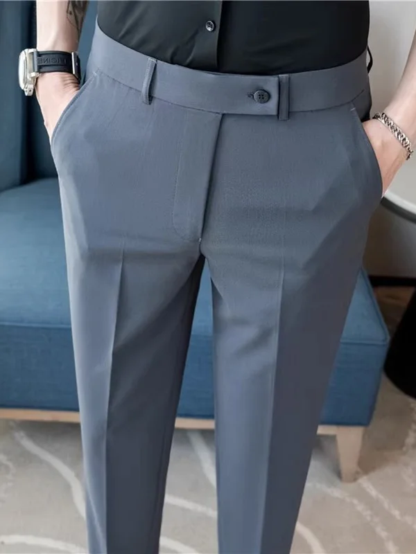 Summer slim fit men elastic checkered pants, fashionable gray comfortable business straight leg casual pants brand men clothing