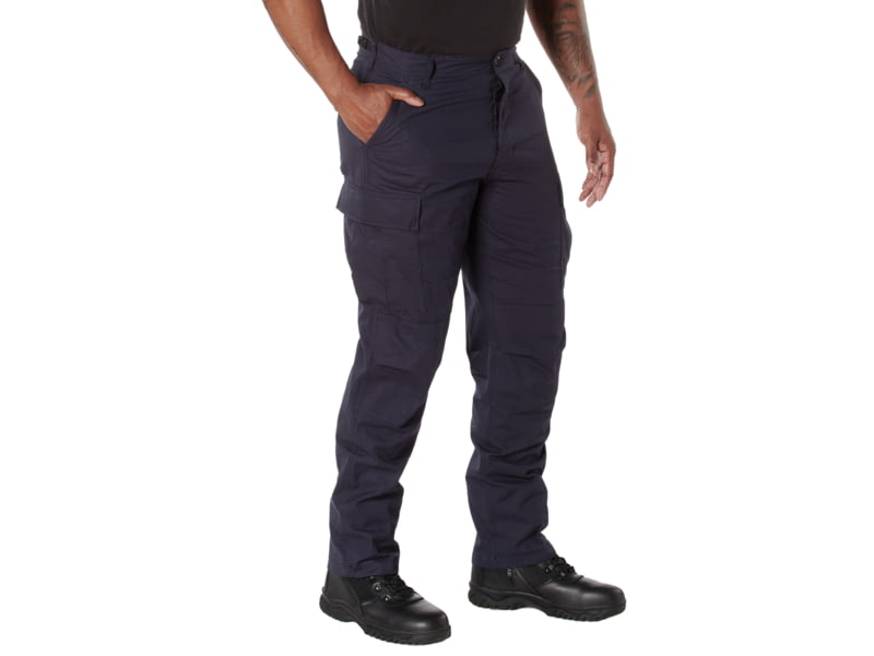 Rothco Relaxed Fit Zipper Fly BDU Pants Navy Blue XL 2961-XL. The BDU Tactical Pants are equipped with six utility pockets: two front slash pockets two button down back pockets and two cargo pockets. These fatigues feature reinforced seat and knees...  Read more
