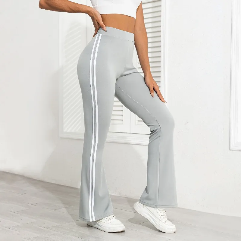 High Waisted Sports Pants with Two Bars Fitness Running Extended Yoga Pants Slimming Slimming Casual Micro Flared Wide Leg Pants