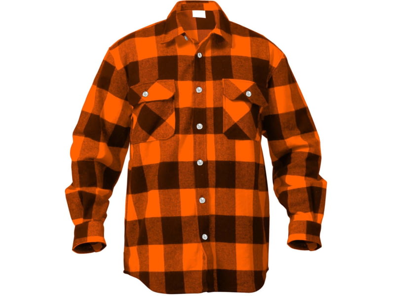 Rothco Extra Heavyweight Buffalo Plaid Flannel Shirt - Mens Orange Plaid 4XL 4673-OrangePlaid-4XL. These rugged button-down shirts are great for either wearing on its own or layering as a jacket. They're made from 8-ounce heavyweight cotton fabric...