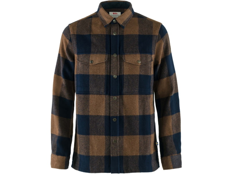 Fjallraven Canada Shirt - Men's Chestnut/Dark Smallmall F90631-230-555-S. It combines the warmth of wool with the durability of synthetic fibres. Details in G-1000 on the inside of the collar cuffs pocket flaps and front opening. Both chest pockets...  Read more