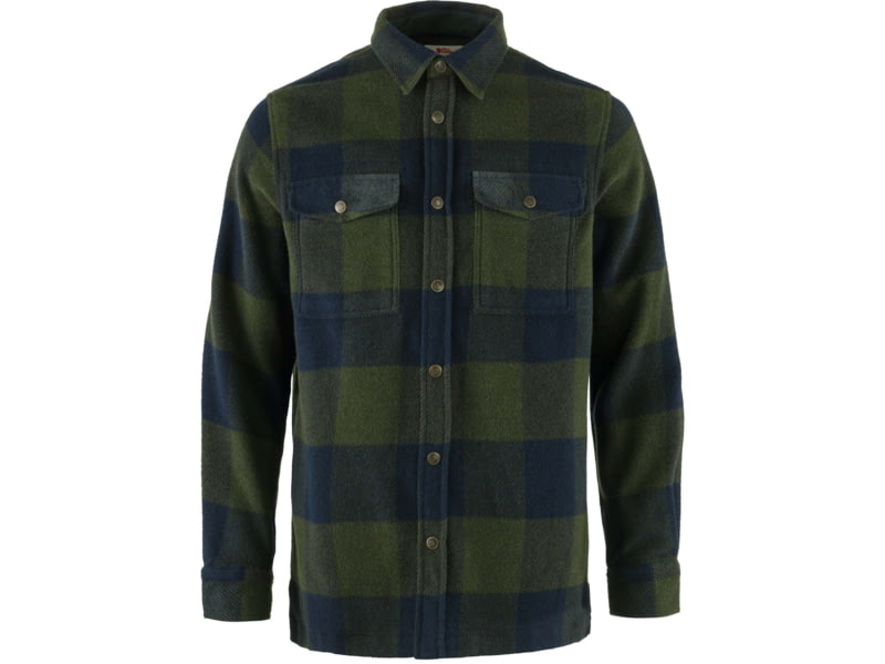 Fjallraven Canada Shirt - Mens Deep Forest/Dark Navy Small F90631-662-555-S. It combines the warmth of wool with the durability of synthetic fibres. Details in G-1000 on the inside of the collar cuffs pocket flaps and front opening. Both chest...  Read more
