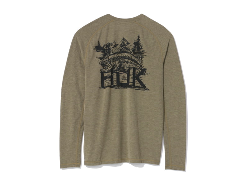 HUK Performance Fishing Drift Graphic Crew Shirt -Men's Long Sleeve Heather Moss Large H1200709-318-L