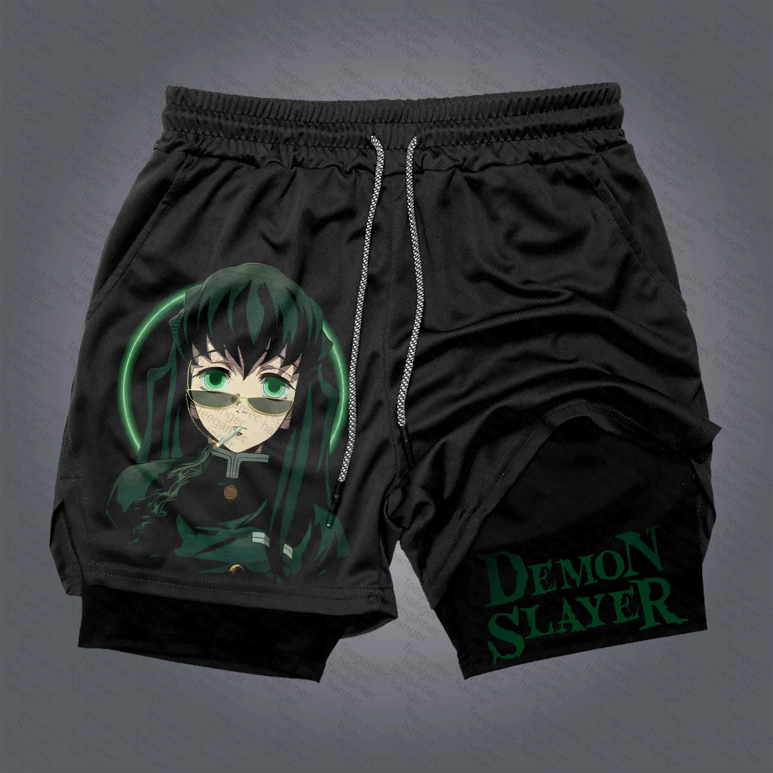 Kimetsu No Yaiba Shorts Men Cotton Casual Pants 2025 Summer Anime Graphic Bottoms Black Base Obanai Iguro Green Hair Snake