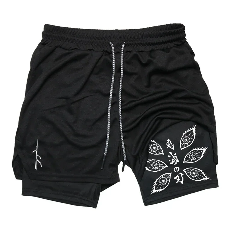 New Demon Slayer Anime Printed Running Double Shorts Men's Summer New Gym Sports Cycling Hiking New 2-in-1 Shorts
